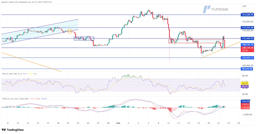 The immediate focus now shifts to the critical uptrend support line at approximately $108,150. A sustained break below this foundational support would further justify the bearish bias and likely trigger the next leg down toward lower technical targets.